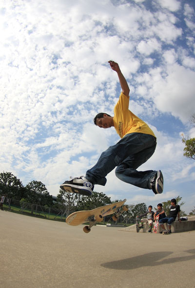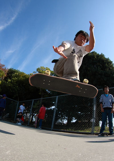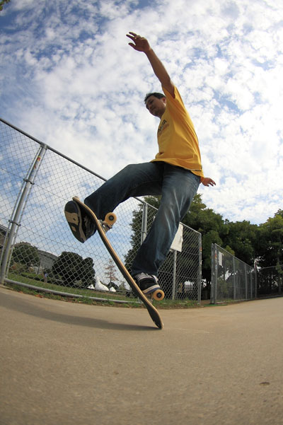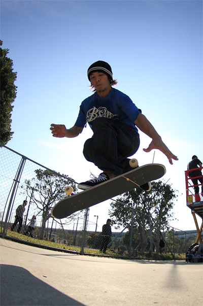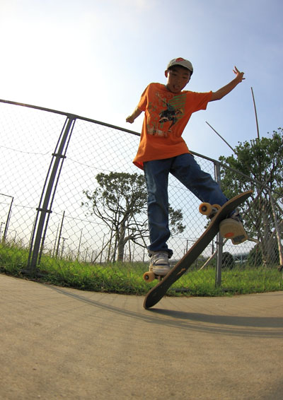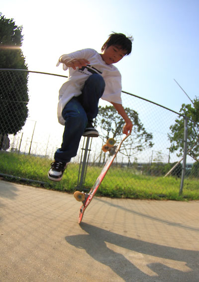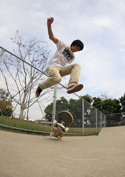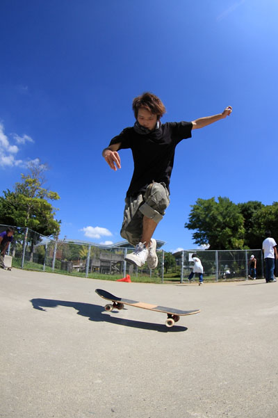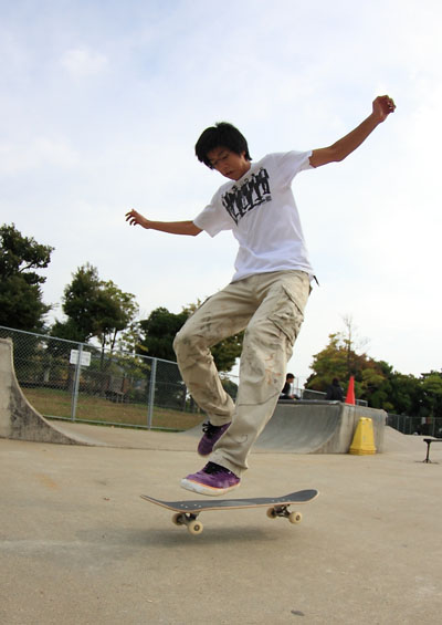 なぜか、オーリーのほうのキックフリップを見せてくれました。