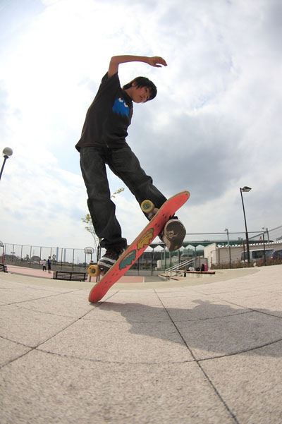 この助走で恐ろしいほどのジャンプ力で滞空時間たっぷりのオーリーを披露!