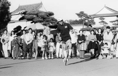ラジカセ鳴らしてルーティンやってるだけでこの人だかり。