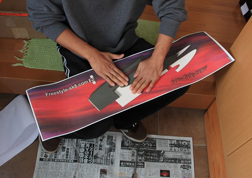 フリースタイルではドッグウォークなどの独特なトリックがあり、デッキテープの中央を抜いて貼ったり、自分でアレンジしたりして貼ったりするかたも多いです。なので、自分で貼るので、はり方を教えてほしいという問い合わせが結構ありましたので、このページを作成しました。