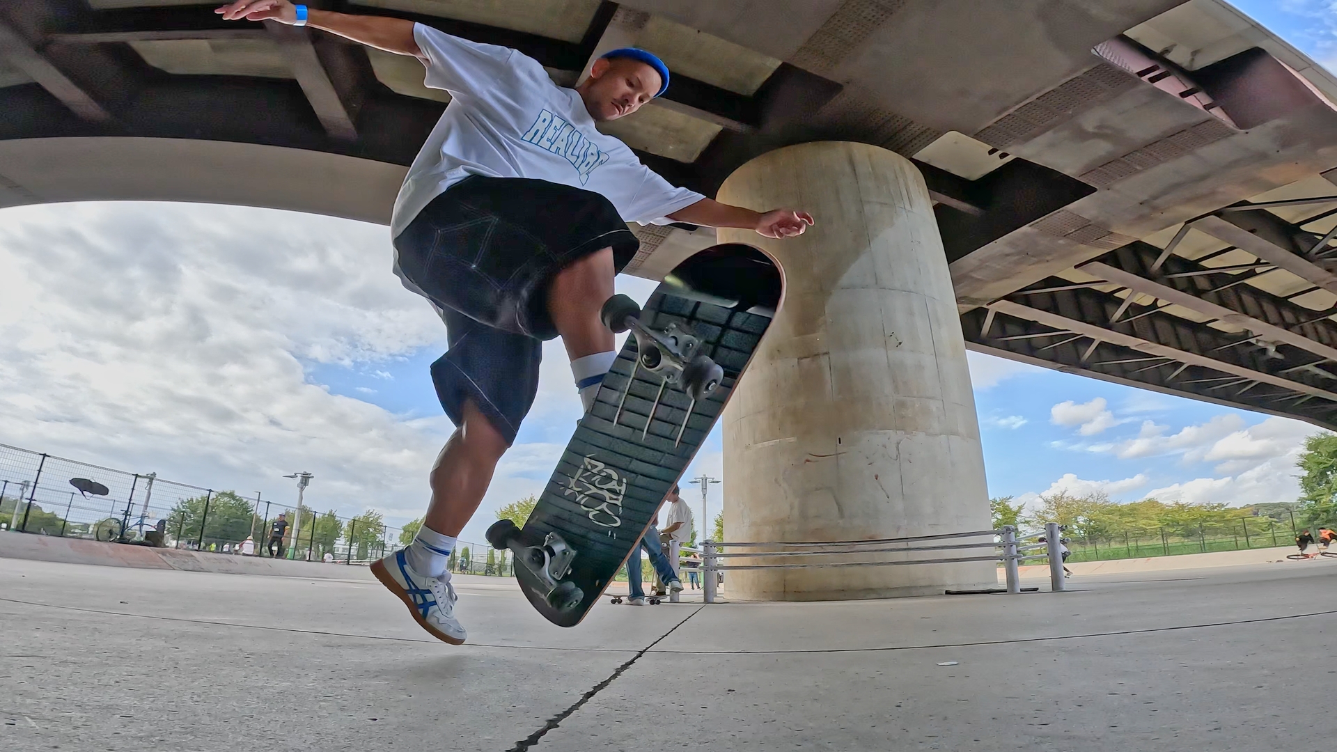 その後、フリースタイルのキックフリップやショービット、フィンガーフリップなどの基本トリックや得意なトリックを練習します。現状維持・これまでできていたトリックの再確認です。