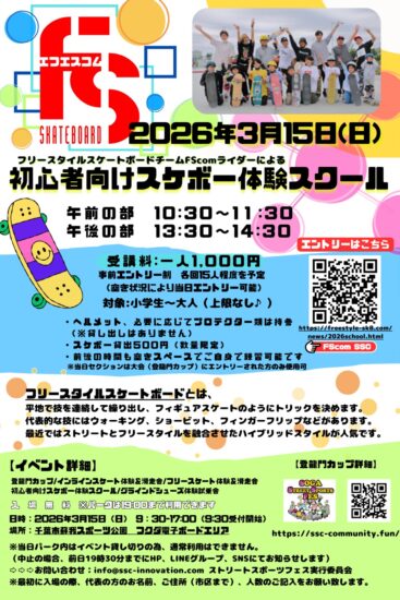そんなお悩みや目標をお持ちの方へ。 2026年3月15日(日)、ストリートスポーツの祭典「StreetSportsCampFes」にて、初心者・初級者向けのスペシャルスクールを開催します!